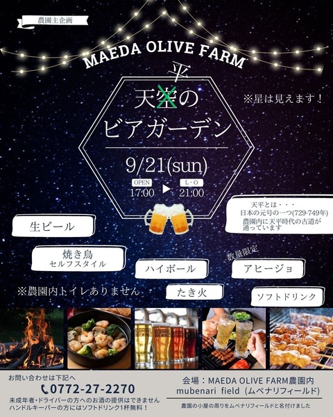 少し遅めのビアガーデンを計画しています、ぜひ遊びに来てください♪